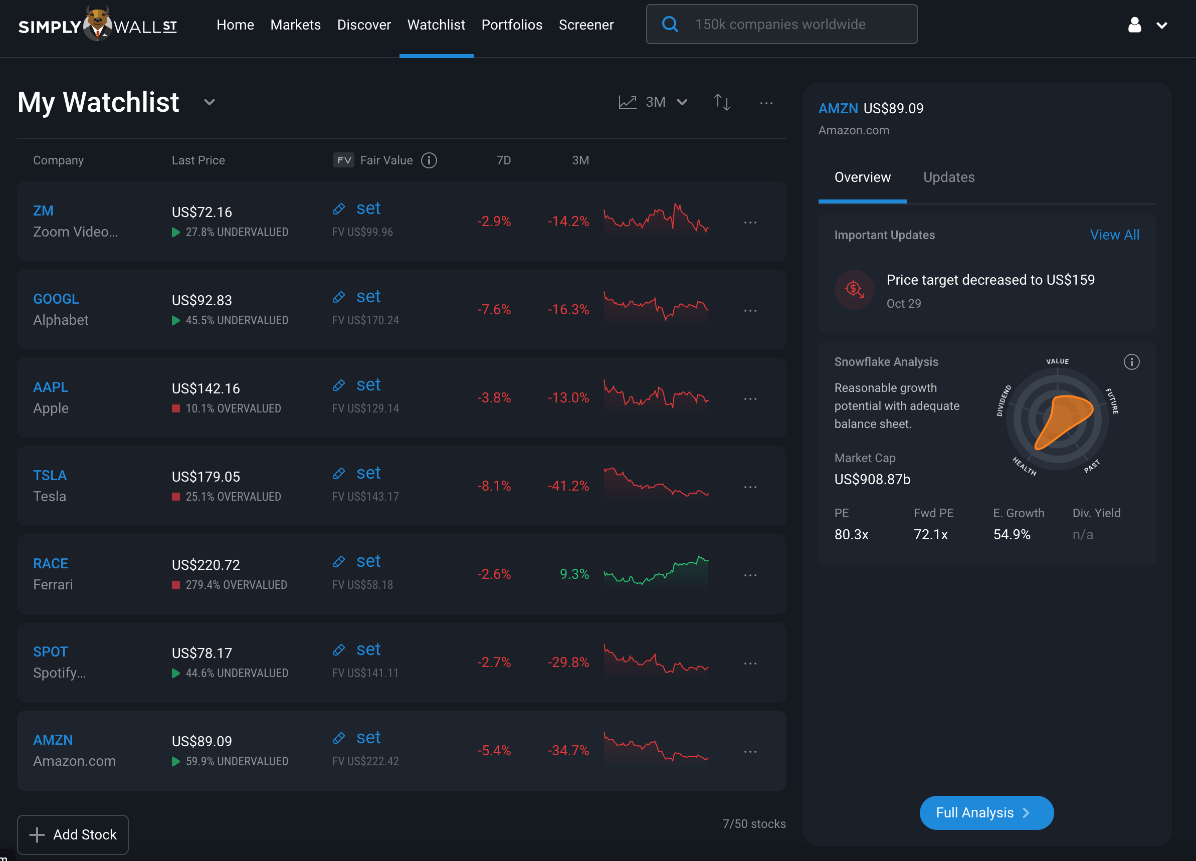 Once you know which companies you use above that are also publicly listed as stocks on the stock market, you can then add them to your Simply Wall St Watchlist!